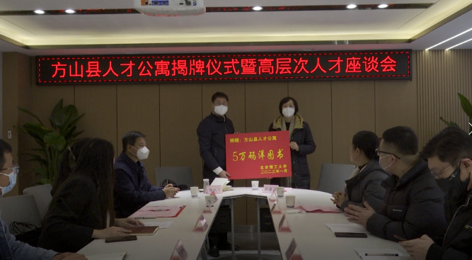 座谈会上,周明宇代表北京理工大学为方山县人才公寓捐赠图书,引进的高层次人才进行了发言与交流。