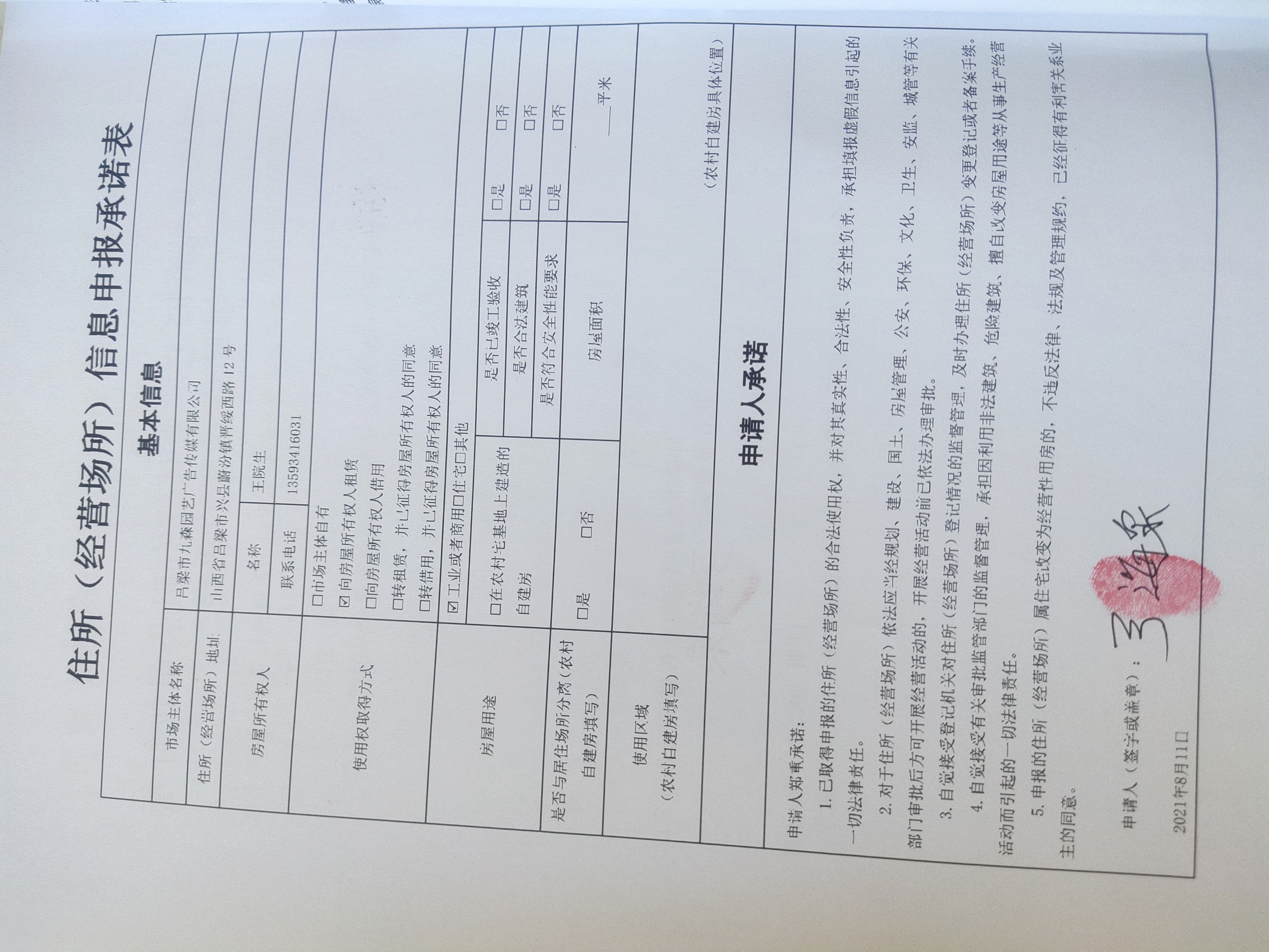 【主动公示型信用承诺书】吕梁市九森园艺广告传媒有限公司