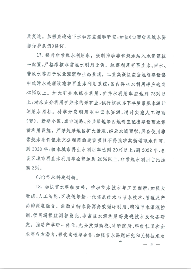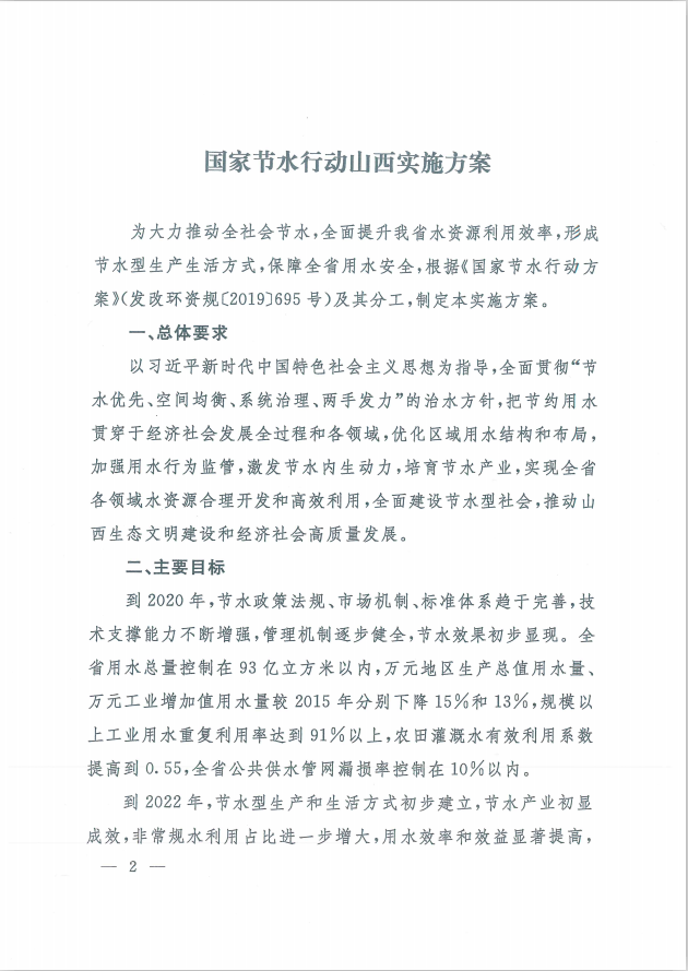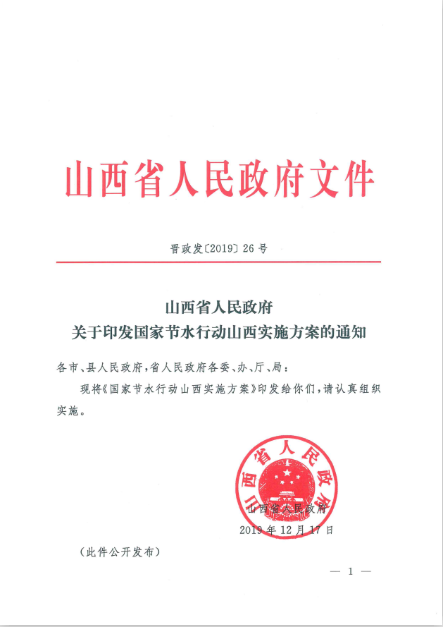 山西省人民政府关于印发《国家节水行动山西实施方案》的通知